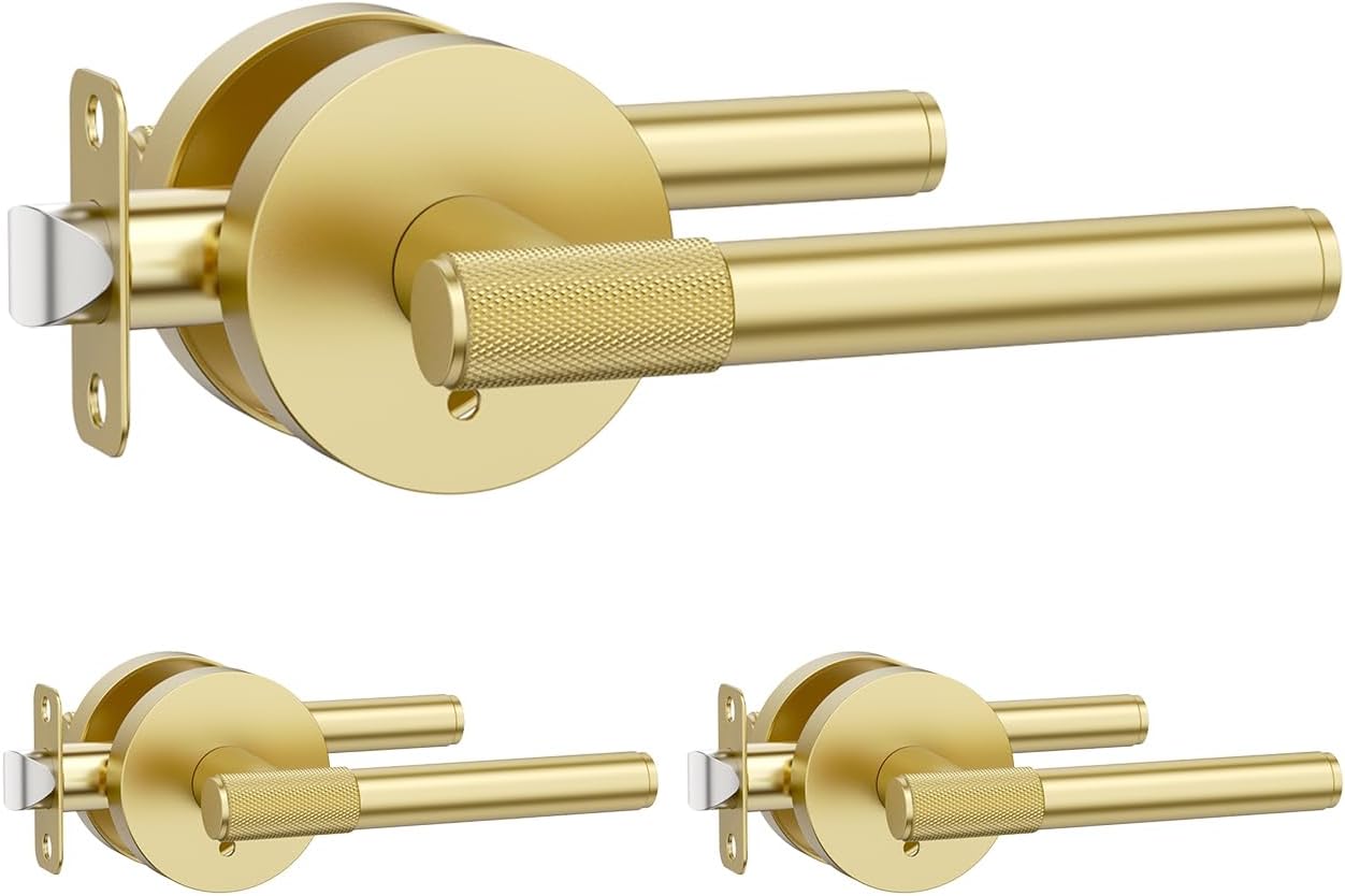 Amerdeco 2 Pack Champagne Bronze Dummy Door Handles, Decorative Non-Turning Door Lever with Door Knobs for Closet, French Double Doors, Pantries & Interior Push/Pull Doors.AM0027