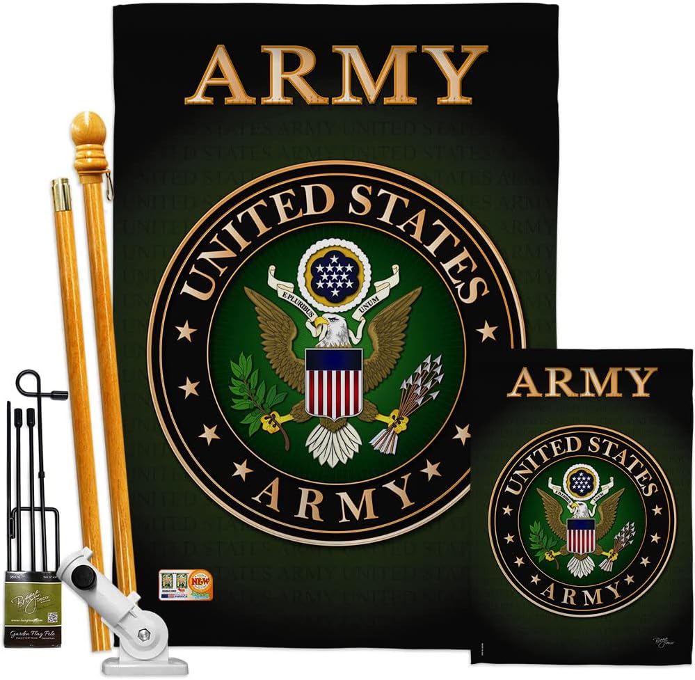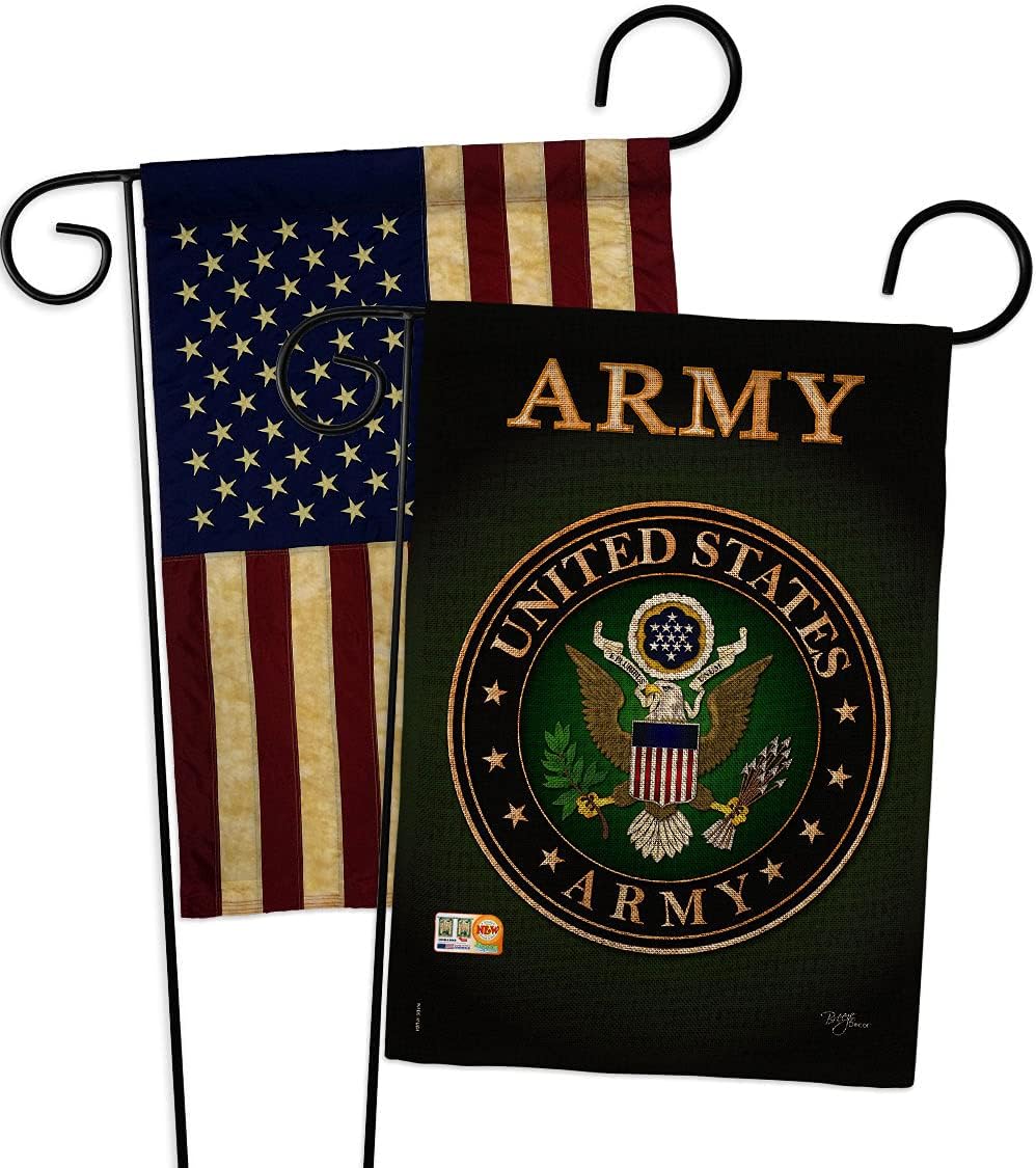 Military Beautiful Mini Garden Flag with Metal Garden Banner Pole Stand - Complete Set with Garden Pole - 16" x 40" Power Coated Metal Flag StandBreeze Decor have variety of Garden Flag Set for all occasions. Uniquely design for hanging indoor or outdoor use. We are committed to offering you exceptional values. Our customers enjoy displaying our Garden Flag Set for longer periods. Specification: Theme: Military Size: Garden Flag Set 13" x 18.5" Size: Metal Garden Pole Print: Double-Sided Readable: Readable Both Sides Material: Weather Resistant Double Burlap Stitching: Double Stitched Display: Vertical Hang Type: Sleeve Artist: © Schal Lee Special Features: Origin: Made In USAPackage Include: 1 pc x Mini Garden Flag 13" x 18.5" 1 pc x Metal Yard Banner HardwareFor more than a decade, we’ve been dedicated to manufacturing flags with no comparison in quality and beautiful designs. Our flags are made with our Pro Guard material that is soft to the touch and designs can be read correctly on the flag. A feature that our customers will love. We are committed to using eco-friendly inks that won’t leave a foot print in our environment. MPN: BD-MI-GS-108055-IP-DB-D-US20-UA 08055 58055