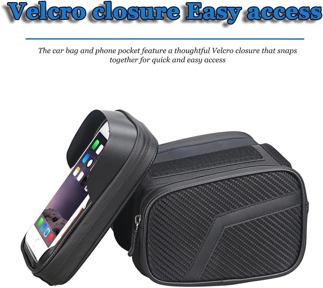 📣 📣 📣【Why Choose This Bike Handlebar Bag?】💕💕 Whether you're commuting, road cycling, or mountain biking, this versatile bike frame bag ensures your essentials are organized and easily accessible. The waterproof features, sensitive touch screen, and secure storage design make it a must-have for cyclists🔰【Specifications】:1. Name: Waterproof Bike Top Tube Bag2. Material: Polyester3. Color: Black4. Applicable models: Bike Frame Bag for Trek Y22 Medium 19965. Compatibility: Smartphones up to 7.2 inches✅【Touchable Cell Phone Bag】:🔴─Clear and Sensitive Touch Screen Window: Allows easy navigation without removing your phone🔴─Sun Visor: Specially designed to reduce glare, ensuring clear visibility in bright conditions🔴─Removable Phone Holder: Conveniently attaches and detaches for easy use🔴─Fits Most Phones: Compatible with phones up to 7.2 inches🔴─Enjoy Music on the Go: Connect your headphones easily while riding for a more enjoyable experience✅【Dual Side Storage】:🔵─Spacious Side Pockets: Keep essentials like your phone, keys, wallet, snacks, and tools organized and accessible during your ride.🔵─Excellent Waterproof Material: Superb rain resistance ensures your items stay dry even on rainy rides🔵─Shock-Resistant Design: Helps maintain the bag's shape while providing reliable protection for your items🔵─Compact & Lightweight: Small, lightweight design that won’t interfere with your ride but offers plenty of storage space📦 【Package Contents】1* Bike Handlebar Bag with Phone Holder📌【Warm Tip】:1. Please check if the bag fits your bike frame size before purchasing2. If you have any questions or issues with the product