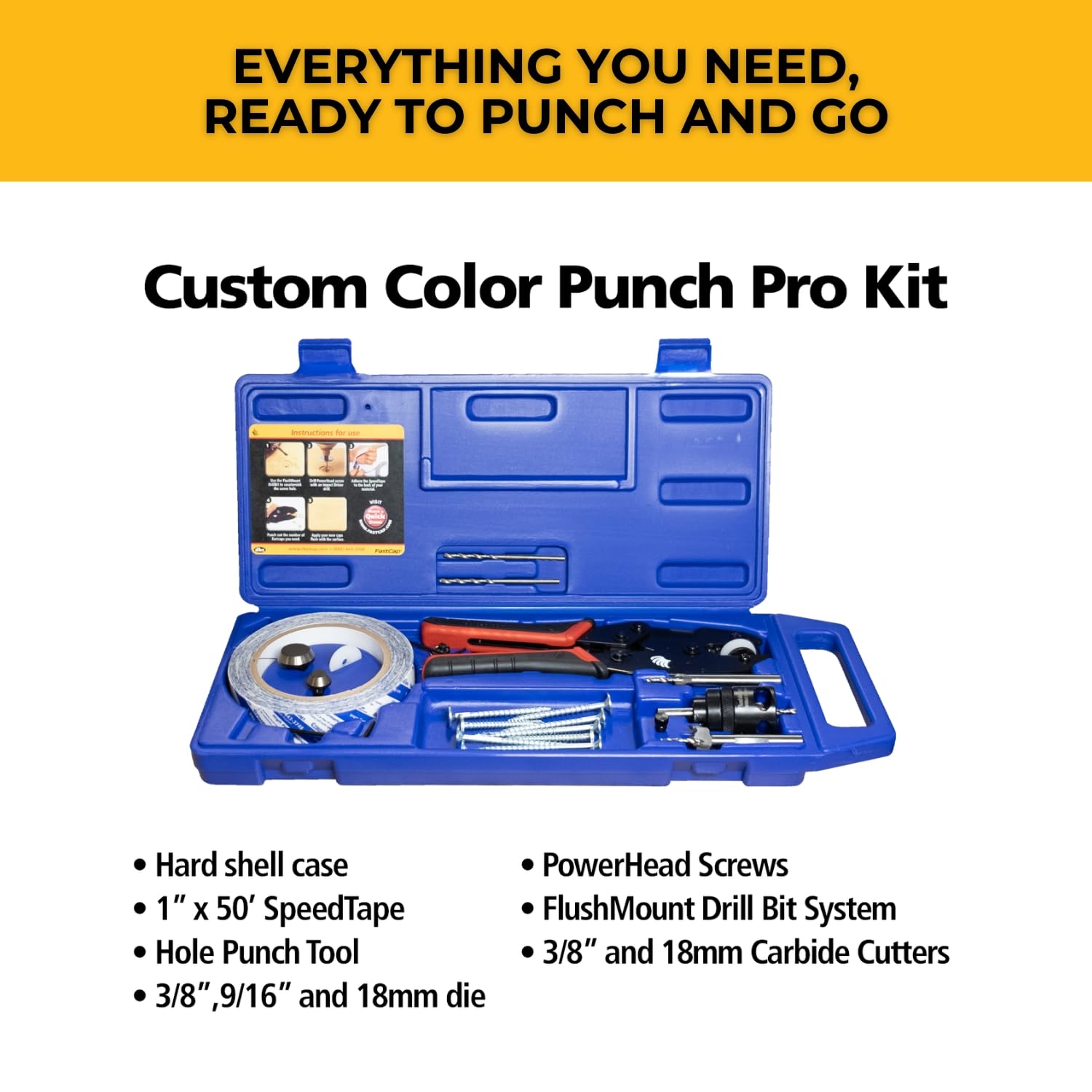 A must-have toolset for any woodworking enthusiast or professional craftsman, this comprehensive kit is designed to elevate your drilling experience and produce flawless, professional results in various applications. This Punch Kit Pro comes with a comprehensive selection of tools from carbide cutters, speedtape to powerhead screws and hole punch tool, catering to a wide range of project requirements. The flushmount drill bit, screws and cutters are engineered to provide precise, flush drilling, ensuring a clean and professional finish in woodworking and various work applications. Whether you're a seasoned professional or a DIY enthusiast, the FastCap Punch Kit Pro empowers you to achieve professional-grade results with ease and consistency. The included hard storage case not only keeps all your power tools neatly organized but also enhances portability, making it easy to transport the kit to job sites or store it away when not in use. It comes with a Hard shell case, 1" x 50' SpeedTape, 3/8", 9/16" and 18mm die, Hole Punch Tool, Powerhead Screws, FlushMount Drill Bit System, 3/8" and 18mm Carbide Cutters.