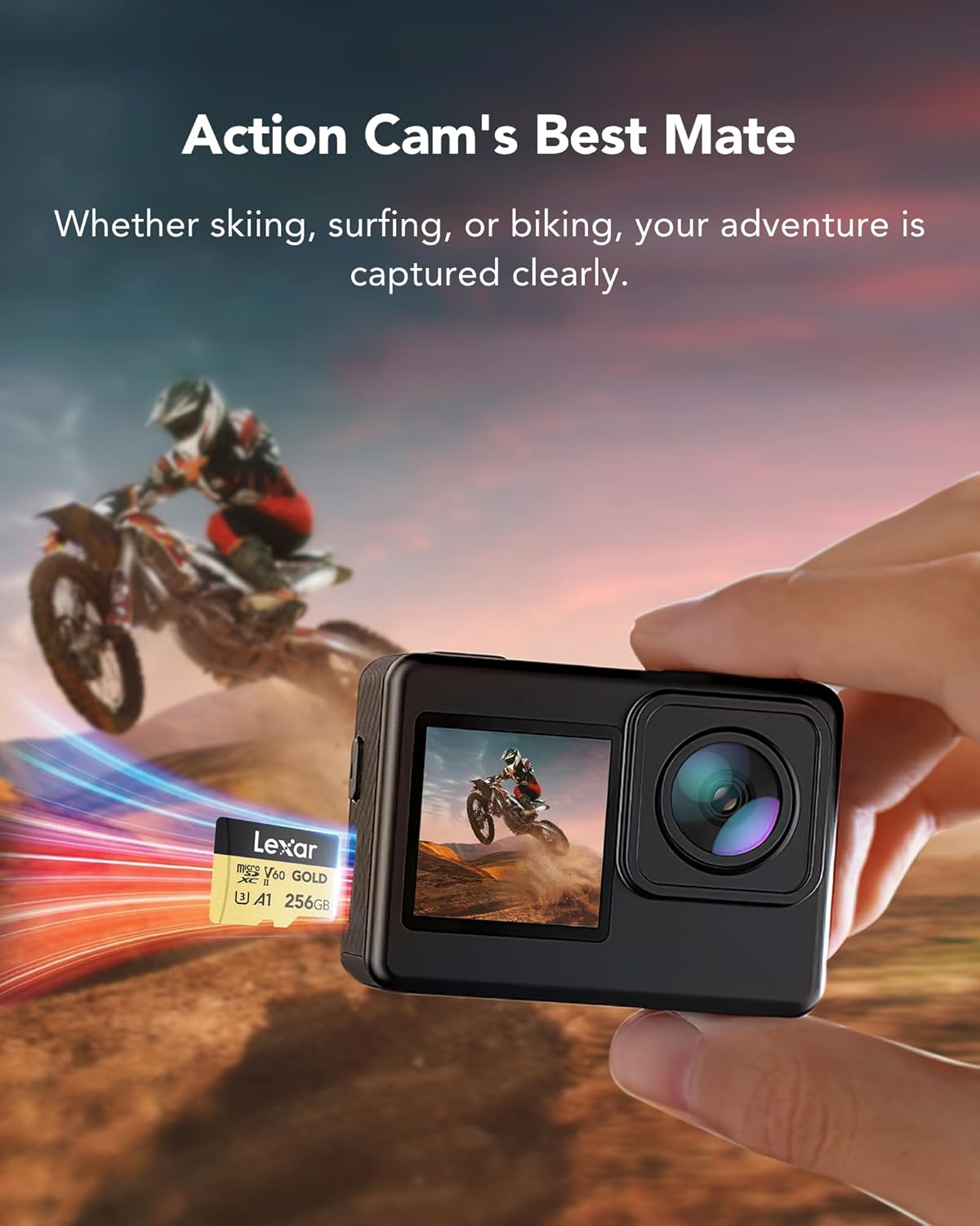 Lexar Professional GOLD microSDXC UHS-II Card is the perfect high-performance card for capturing drone and action camera footage and is also great for UHS-II portable gaming devices. Read speeds up to 280MB/s allow you to quickly transfer massive amounts of files and load games fast while write speeds up to 180MB/s and a V60 rating let you capture high-quality images and extended lengths of Full-HD and 4K UHD video without dropping frames.