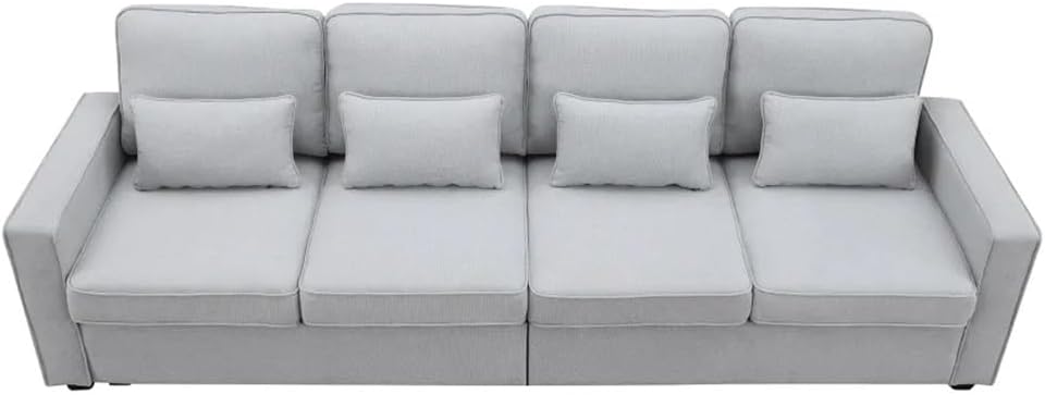 The sofa is made of solid wood frame,strong and . The seat bag is made of high-density sponge, which has good resilience.The linen fabric is characterized by absorption and breathability, thick and wear-resistant,it will not be stuffy when sitting for a long time.It has large seat depth, each seat can support 330lbs. very suitable for parties.To make the environment look neater,the sofa has some storage pockets on the side to storage magazines,phones,remote controls or others.High Adaptability: atmospheric design can meet many kinds of decoration .The large seat depth can brings you more comfortable feeling.Upholstery Material polyesterFrame Material:Solid + Manufactured WoodFrame Material Details:Solid Wood and plywoodLeg Material:PlasticSeat Fill Material:Foam; Pocket springSeat Construction:Sinuous SpringsBack Fill Material:PolyesterPackage Includes:1 x Sofa(no other presentation items included).Notice:1. Due to manual measurement, please allow 2-3% error, before you bid, please make sure you don't mind.2. The color may vary due to different displays, please refer to the actual product.